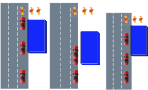 -- in (Traj | do(obs → obs - 3)) | EEven at the speed limit, the car would have crashed into the pedestrian, but moving the obstacle to improve vision would have avoided the crash.
