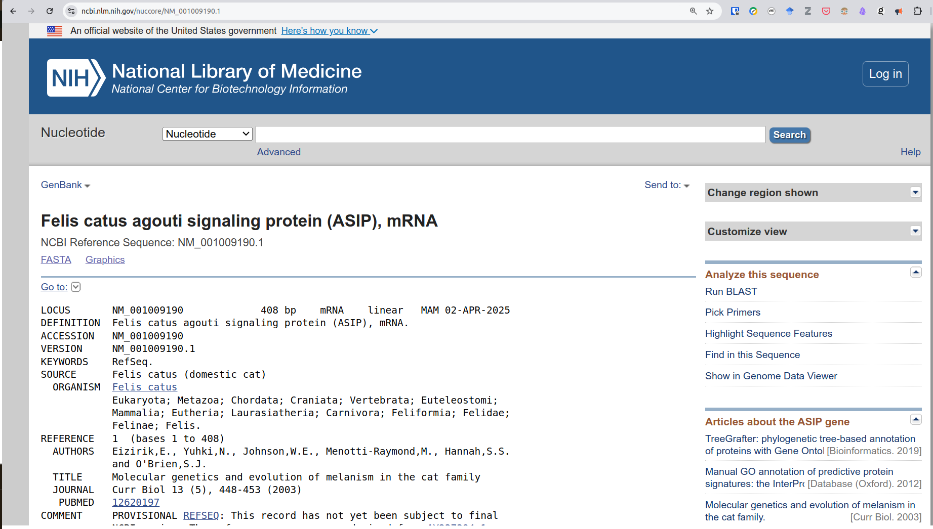 “Molecular Genetics and Evolution of Melanism in the Cat Family.” Current Biology 13 (5): 448–53.